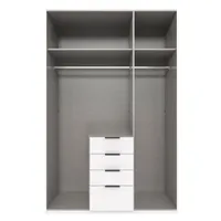 Kogu sarja mööbel on valmistatud kvaliteetsest mööbliplaadist ja saadaval erinevate viimistlustega. Kapp on nutikalt jaotatud kaheks osaks, mõlemal pool on ülemises osas riidepuutoru ja vaheriiul, keskel alumises osas neli sahtlit, pakkudes rohkelt hoiuruumi.