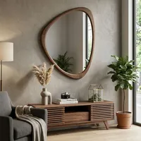 Peegel Miro paistab silma oma pehme ja orgaanilise kujuga, mis lisab ruumile visuaalset kergust ning iseloomu. Soojatooniline puidust raam toob interjööri naturaalset hubasust ja loob kauni kontrasti peegelpinnaga.