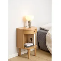 Šiki ja ajatu esteetikaga öökapp paistab silma elegantse poolringikujulise vormi ning kaunilt ümarate jalgadega. Lakitud tammespoon toob esile naturaalse puidusüü ning annab pinnale sooja ja hubase kuma, sobitudes suurepäraselt erinevate sisustusstiilidega.