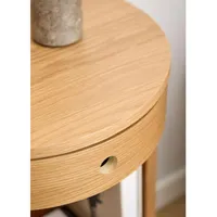 Öökapp on valmistatud kvaliteetsest tammespooniga viimistletud mööbliplaadist, mis toob kaunilt esile naturaalse puidusüü ja annab mööbliesemele sooja, ajatu ilme. Stabiilsust ja naturaalsust rõhutavad tugevad ümarad jalad, mis on valmistatud tammepuidust. Selline materjalide kooslus ühendab endas nii praktilisuse kui ka šiki disaini – ideaalne valik, kui soovid öökappi, mis näeb hea välja ja peab ka igapäevases kasutuses hästi vastu. Jalad 20 cm kõrged.