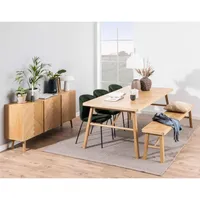 Galway pink ühendab endas põhjamaise minimalismi ja pilkupüüdva kalasabamustri, luues tõeliselt elegantse ning ajatu koosluse. Matt tammepuidust toon ja kvaliteetne lakitud viimistlus annavad pingile sooja naturaalse ilme, mis sobib ideaalselt nii modernsesse kui klassikalisemasse interjööri.