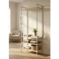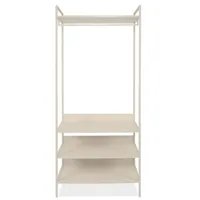 Mööbel on saadaval kahes viimistluses- pehme beež toon ning soe artisan tamme imitatsioon. Alumises osas on kolm riiulit ning üleval riidepuutoru ning üks riiul. Raam on metallist ning riiulid melamiinkattega mööbliplaadist.