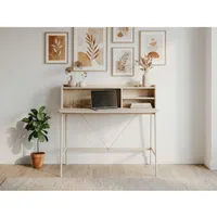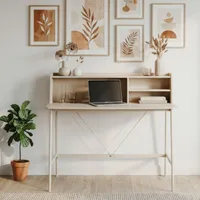 Integreeritud riiuliosa aitab hoida töövahendid ja vajalikud esemed käeulatuses ning korras, muutes igapäevase kasutamise eriti mugavaks. Stabiilne metallraam tagab lauale vastupidavuse ja kindla konstruktsiooni, samas kui õhuline vorm annab ruumile kergust.
