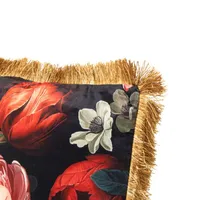 Stiilne dekoratiivpadi, mis ühendab lillelise romantika glamuurse šikiga: lopsakad soojades värvinüanssides pojengid paljastavad oma täieliku väljendusrikkuse sügavmustal taustal ja näevad välja peaaegu nagu oleksid nad maalitud.