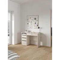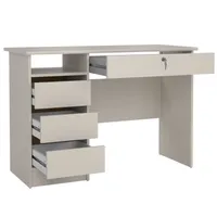 Kirjutuslaud on valmistatud vastupidavast ning kvaliteetsest mööbliplaadist. Laual on kolm väiksemat sahtlit, mis liiguvad mugavalt metallsiinidel, keskel olev suurem sahtel käib lukku. Laual on üks avatud riiuliosa. Lauaplaadi kandevõime ühtlaselt jaotatud koormuse korral on 32 kg. Ühe sahtli kandevõime on 4 kg, avatud osa kandevõime on 10 kg.