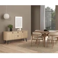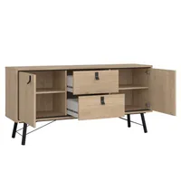 Puhvetkummut on valmistatud kvaliteetsest mööbliplaadist, pakkudes usaldusväärset kasutust ning ajatut välimust. Kapil on kaks ust, mõlema taga asub üks vaheriiul, võimaldades mugavalt hoiustada nõusid, tekstiile või muid majapidamistarvikuid. Lisaks on kummutil kaks praktilist sahtlit, mis liiguvad sujuvalt ja vaikselt metallsiinidel.