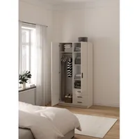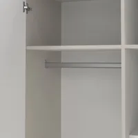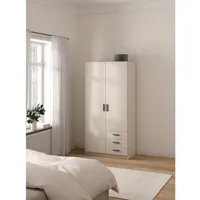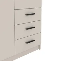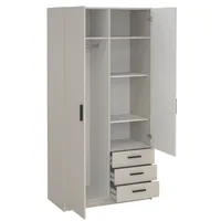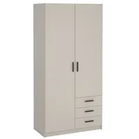 Riidekapp on valmistatud kvaliteetsest mööbliplaadist. Käepidemed on värvitud plastikust. Kapp on kaheks jaotatud, vasakul pool on ülemises osas üks riidepuutoru ning vaheriiul, paremal pool kolm metallsiinidel liikuvat sahtlit ning kolm vaheriiulit.