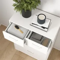 Kogu sarja mööbel on valmistatud mööbliplaadist ning saadaval kolmes erinevas viimistluses- valge, hickory ning valge kõrgläige. Kummutil on kaks väiksemat ning kolm suuremat metallsiinidel liikuvat sahtlit. Suurema sahtli kandevõime kuni 9 kg, väiksema 3kg, pealmise plaadi kandevõime 13 kg. Jalad plastikust, käepidemed alumiiniumist.