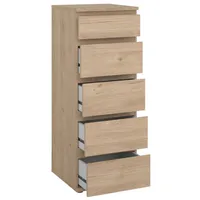 Kogu sarja mööbel on valmistatud mööbliplaadist ning saadaval valges toonis ja puiduse hickory viimistlusega. Kummutil on viis metallsiinidel sahtlit. Sahtlite kandevõime 3-5 kg. Pealmise plaadi kandevõime kuni 15 kg. Jalad plastikust.