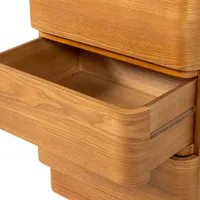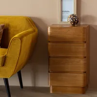 Hollandi sisustusbrändi WOOOD Fejo kummut on stiilne ja rahuliku ilmega mööbliese, mis toob ruumi soojust ja tasakaalu. Sõbralikud vormid ning atraktiivne puidutooni viimistlus loovad kutsuva atmosfääri, samas kui neli avarat sahtlit pakuvad praktilist hoiuruumi igapäevastele esemetele. Tänu oma kompaktsele disainile sobib Fejo suurepäraselt nii elutuppa, magamistuppa kui ka väiksematesse ruumidesse.
