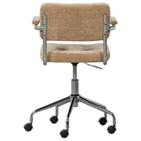 Kova kuulub Hollandi sisustusbrändi WOOOD kollektsiooni ning on kaetud Aucklandi soonikkangaga, mis on valmistatud 100% polüestrist ja mille Martindale’i väärtus on 30 000. Istme kõrgus on reguleeritav vahemikus 42–56 cm, istme laius ja sügavus on mõlemad 46 cm. Seljatugi on 44,5 cm lai ja 34 cm kõrge, käetugede laius on 5,5 cm ning kõrgus 21 cm, tagades tasakaalus toe ja mugava tööasendi.