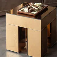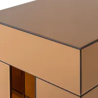 Hollandi sisustusbrändi WOOOD Mirrox abilaud on ainulaadse disainiga pilgupüüdja, mis toob interjööri luksust ja isikupära. Pruuni tooni ja peegelklaasi kooslus loob elegantse kontrasti, mis püüab pilke, kuid jääb samas maitsekaks ja tasakaalukaks.
