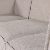 Nurgadiivan on polsterdatud Fable šenillkangaga, mis on tuntud oma pehme tekstuuri ja stiilse välimuse poolest. Jämeda struktuuriga šenill annab diivanile iseloomu ning on kasutamisel meeldivalt pehme. Kangas koosneb 100% polüestrist ning selle Martindale’i väärtus on 50 000, mis teeb selle sobivaks igapäevaseks kasutamiseks. Õige hoolduse korral säilitab kangas oma kvaliteedi ja välimuse aastaid. Diivan on FSC-sertifikaadiga, mis tähendab, et kasutatud puit pärineb vastutustundlikult majandatud metsadest. Diivani kõrgus on 73 cm, laius 286 cm ja sügavus 160 cm. Istme kõrgus on 41 cm, istme laius 258 cm ja istme sügavus 66 cm. Jalgade kõrgus on 3 cm. Diivani kaal on 117,4 kg ning maksimaalne kandevõime on 460 kg.