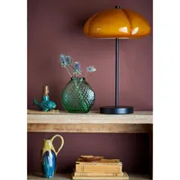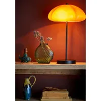 Bloomingville Kinoko laualamp loob ruumis pehme ja meeldiva valguse, mis aitab kujundada hubase ning rahuliku atmosfääri. Kumer, sooja kollase tooniga klaasist kuppel sobitub kaunilt musta metalljalaga, moodustades elegantse koosluse, mis lisab interjöörile iseloomu ja stiili.