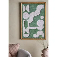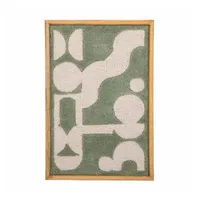Bloomingville Longtoni seinakaunistus ühendab harmoonilise vormi ja orgaanilise ilme, tuues ruumi pehmust ja loomulikku tasakaalu. Pehmelt tuftitud pind on kujundatud kaunites rohelistes ja heledates toonides, mis loovad rahuliku ja pilkupüüdva visuaali. Graafiline muster on elegantselt puitraami sisse raamitud, andes esemele ajatu ja looduslähedase välimuse.