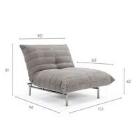 Koos diivaniga kasutades saab tool laiendada istumisala, luues lõõgastava puhkeruumi. Kahe reguleeritava seljatoe asendi abil saab hõlpsasti valida toetava istumisasendi ja lõõgastava lamamisasendi vahel, luues personaalse mugavuskogemuse. Läbimõeldud lahendus soodustab suhtlemist ja loob sooja ning kutsuva keskkonna. Vajadusel avaneb Mikunjo avaraks ja pehmeks lamamiseasemeks, mõõtmetega 90x122 cm. Istme kõrgus on 42 cm, istme sügavus 60 cm. Vahe põrandast 17 cm.