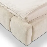 Pesukastiga voodi Nubia paistab silma oma pilkupüüdva ja luksusliku välimusega. Pehme polsterdusega raam ning efektne, vertikaalselt jaotatud peatsiplaat loovad voodile modernse ja hubase ilme. Ümarate vormidega voodiraam annab tervikule pehmuse ja visuaalse sügavuse, muutes voodi magamistoa keskseks pilgupüüdjaks.