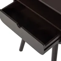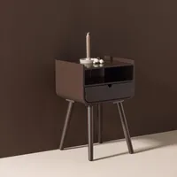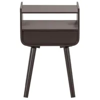Öökapp on valmistatud MDFist ning tumepruunis toonis. Sellel on üks sahtel ning avatud osa.