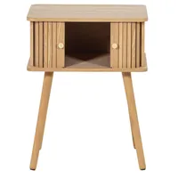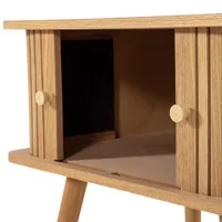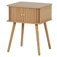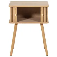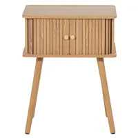 WOOOD Karri öökapp on õhulise ja minimalistliku disainiga mööbliese, mis paistab silma oma mänguliste detailidega. Uste eripärane kujundus annab kapile iseloomu, samas kui naturaalne toon ja nähtav puidusüü loovad kerge ja rahuliku üldilme.