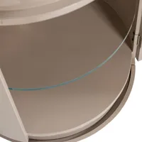 Uste taga asuvad kolm riiulit pakuvad rohkelt hoiustamisvõimalusi, võimaldades mugavalt hoida või esitleda erinevaid esemeid ja aksessuaare. Ümmargune Sera kapp on pilkupüüdev ja stiilne täiendus igasse ruumi – praktiline ja ainulaadne lahendus, mis täiendab Sera sarja. Sera ümmargune kapp on valmistatud MDF-plaadist, mis on tuntud oma sileda pinna ja vastupidavuse poolest. Kõrgläikeline viimistlus annab kapile läikiva ja peegeldava välimuse ning ühtlase värvitooni. Kasutatud puit on FSC-sertifikaadiga, mis kinnitab vastutustundlikku metsandust.