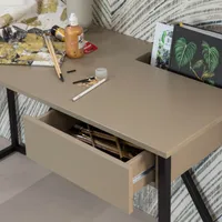 Hollandi sisustusbrändi WOOOD Julius kirjutuslaud ühendab elegantse disaini ja praktilise kasutusmugavuse. Sügavmust viimistlus koos saleda jalaraamiga annab lauale modernse ja stiilse ilme, mis sobib suurepäraselt nii kodukontorisse kui ka õppimisnurka. Avar töötasapind ja käepärane sahtel võimaldavad hoida töövahendid korrastatult käeulatuses, muutes igapäevase töö või õppimise mugavamaks.