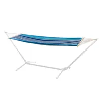 Erilise rippkiige toob esile selle heledates ja tumedates sinistes toonides triibuline kangas, mis sobitub kaunilt valget värvi toestavale metallraamile. Triibuline puuvillast tekstiilkangas on pehme ja mõnus pikutamisalus, millel saab sättida sobivaid asendeid vastavalt vajadusele. Rippkiiges on mõnus puhata või vajadusel tukastada.