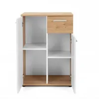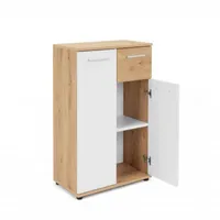 Kummut Jacky on valmistatud kvaliteetsest ning vastupidavast puitlaastplaadist ning viimistletud artisan tamme imitatsiooni ja valge tooniga. Kummutil on üks sahtel, misliigub metallsiinidel. Kummutil on kaks ust- mõlema ukse taga üks vaheriiul. Käepidemed on valmistatud plastikust ning viimistletud halli tooniga.