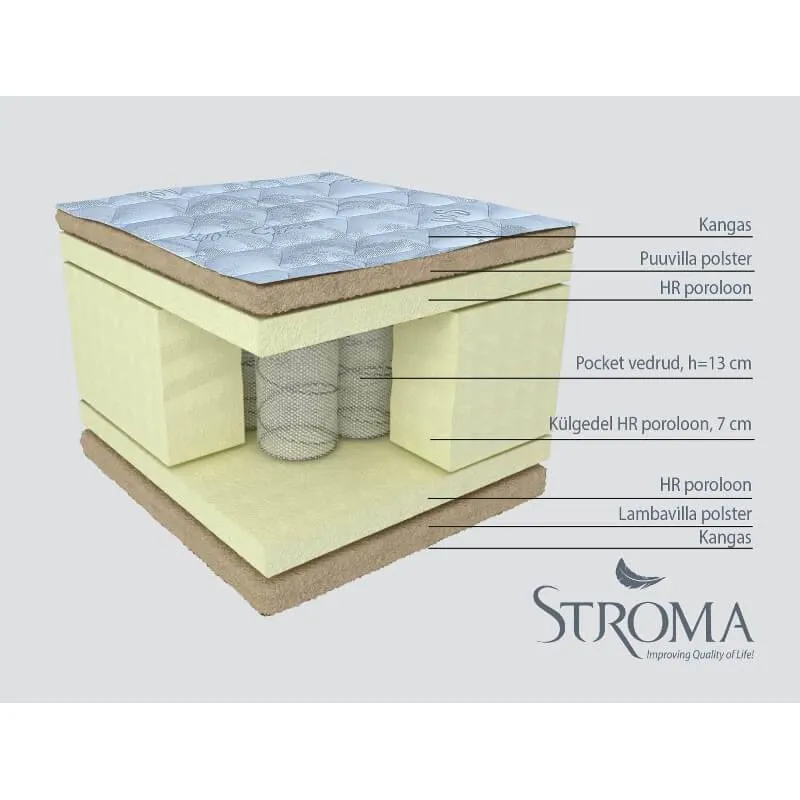 Pocket-tüüpi vedrustuse sõltumatu vedrusüsteem järgib maksimaalselt kehakuju ning kehakaal jaguneb ühtlaselt madratsile, mis kindlustab parima magamismugavuse. Sobib neile, kes soovivad keskmiselt kõva vedrumadratsit, mille täitematerjaliks on HR poroloon.