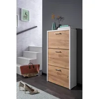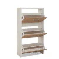 Jalanõudekapp on valmistatud kvaliteetsest valge viimistlusega puitlaastplaadist. Kapil on kolm kuldse tamme imitatsiooniga klappust jalanõude jaoks. Kapp mahutab 18 paari jalanõusid.